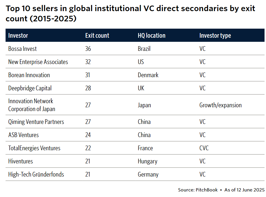 The only corporate VC in the list is TotalEnergies Ventures, the investment arm of petroleum producer TotalEnergies that wound down in 2022. Most of the larger-scale transactions take place between institutional investors like specialised secondaries funds, sovereign wealth funds or family offices, according to the report.