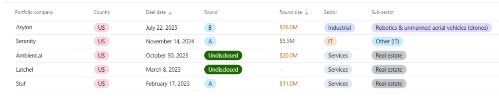 Allegion Ventures invests in early-stage startups in the areas of building analytics, IoT and data security, and property management. Its investments include Ambient.ai, an AI-powered physical security software, and Asylon, an AI-driven robotic security technology.