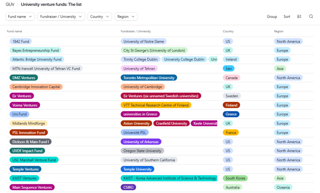 Check out Global University Venturing’s list of university venture funds globally